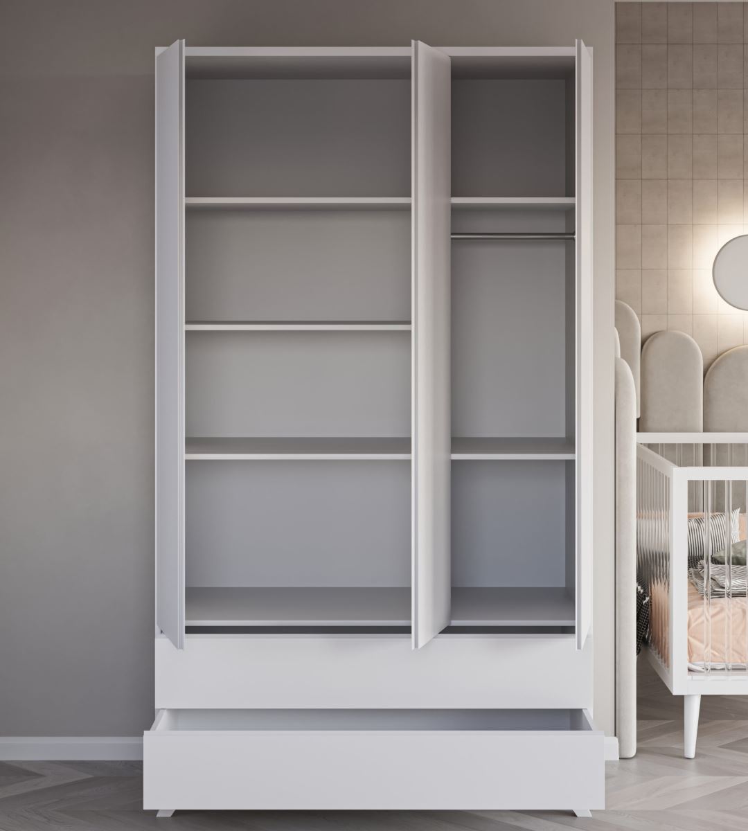 - חלוקה 2 מגירות 3 דלתות, תלייה בצד ימין