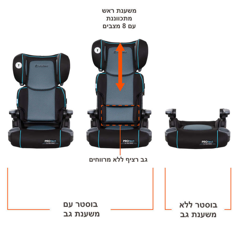 כסא בטיחות חדשני מבית ברייטקס - הדגם החדש המלחיף של פרונטייר 70, דגם Grow WIth You - מתאים מגיל שנתיים (משקח 11.5 ק"ג) ועד לרגע שלא צריך יותר בוסטר בטיחות לילד - משקל גבוה במיוחד 54 ק"ג.