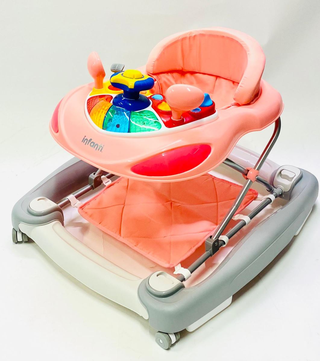 משמש גם כהליכון וגם מצבי גובה משתנים להתאמה מושלמת לגובה התינוק, וכלל מגש פעילות. ריפוד מפואר התומך בגב הפעוט.