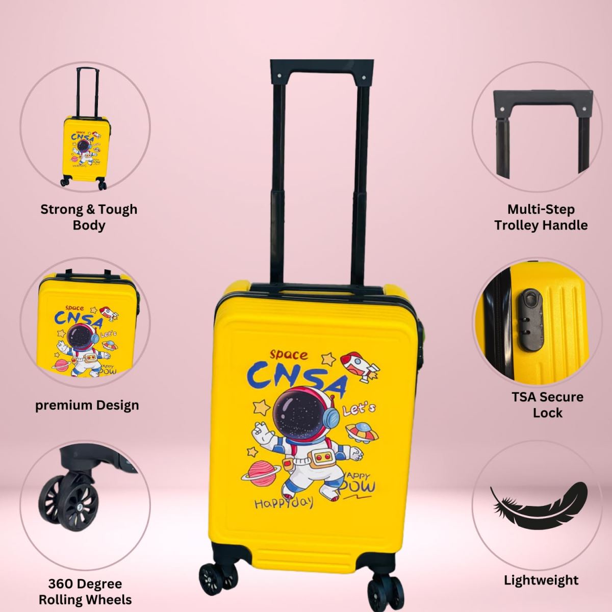טרולי לילד בגודל 18 אינץ דגם אסטרונאט צהוב
