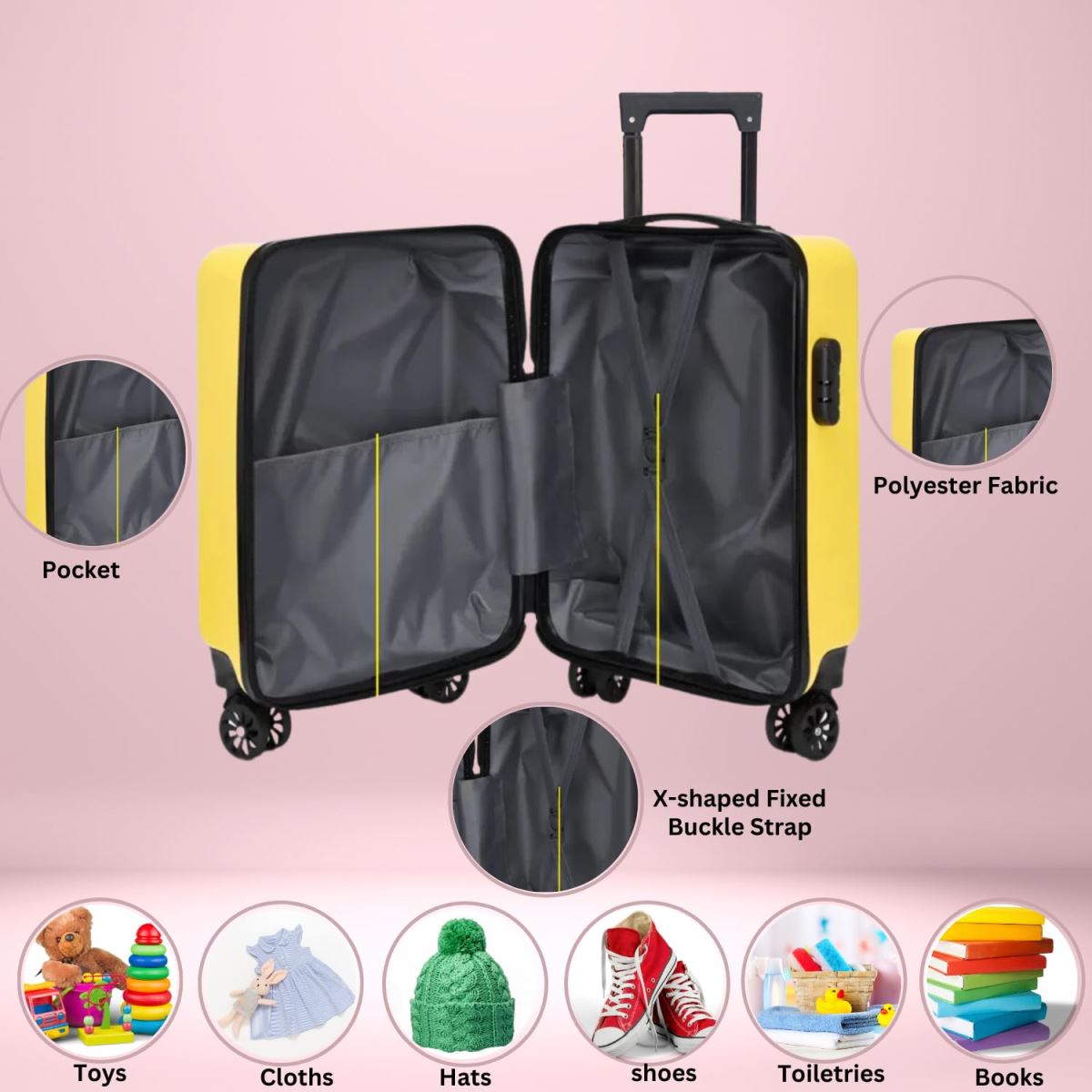 - עם 8 גלגלים לסיבוב חלק, ידית טלסקופית נוחה וחלוקה פנימית חכמה – זו המזוודה המושלמת לילדים.