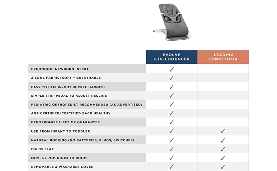 - בעלת נדנוד טבעי - ללא צורך בבטריות או חשמל, מאפשר לקטנים להתנדנד ולשחק עם התנועה הטבעית שלהם.