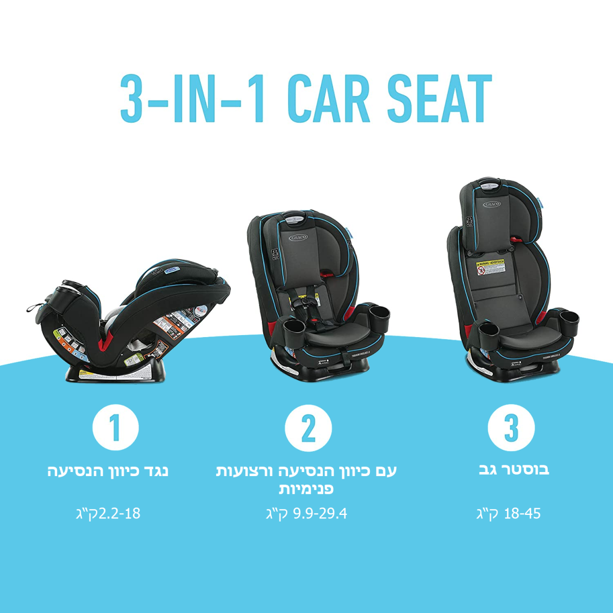 - מאפשר לשבת נגד כיוון הנסיעה עד 18 ק"ג - בערך גיל 4-5