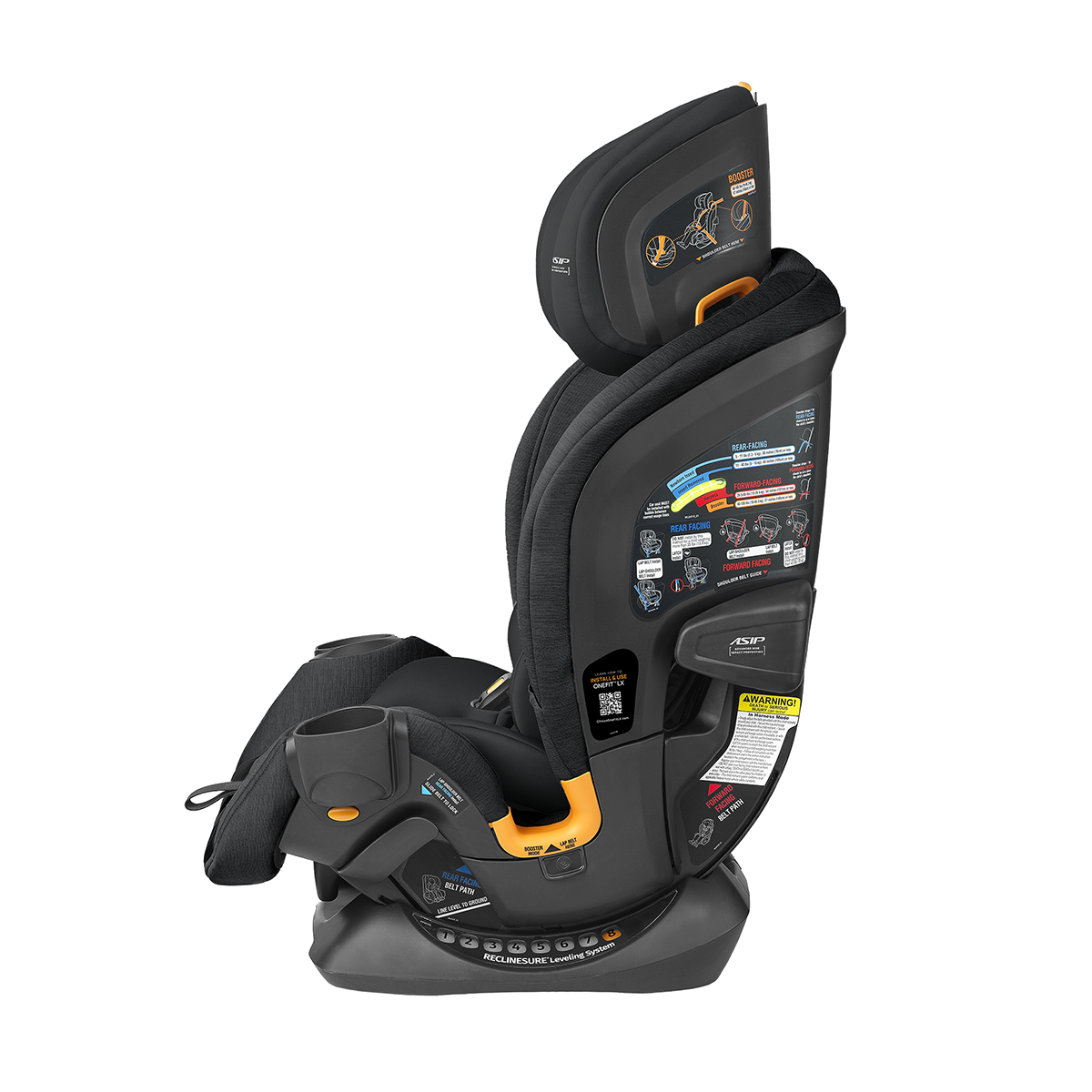- מחווני הבועות ™RideRight בשילוב מערכת ההטיה ™ReclineSure (8 מצבים) מבטיחים התקנה מדויקת ובטוחה של הכיסא, ומאפשרים לילדכם נוחות מרבית.