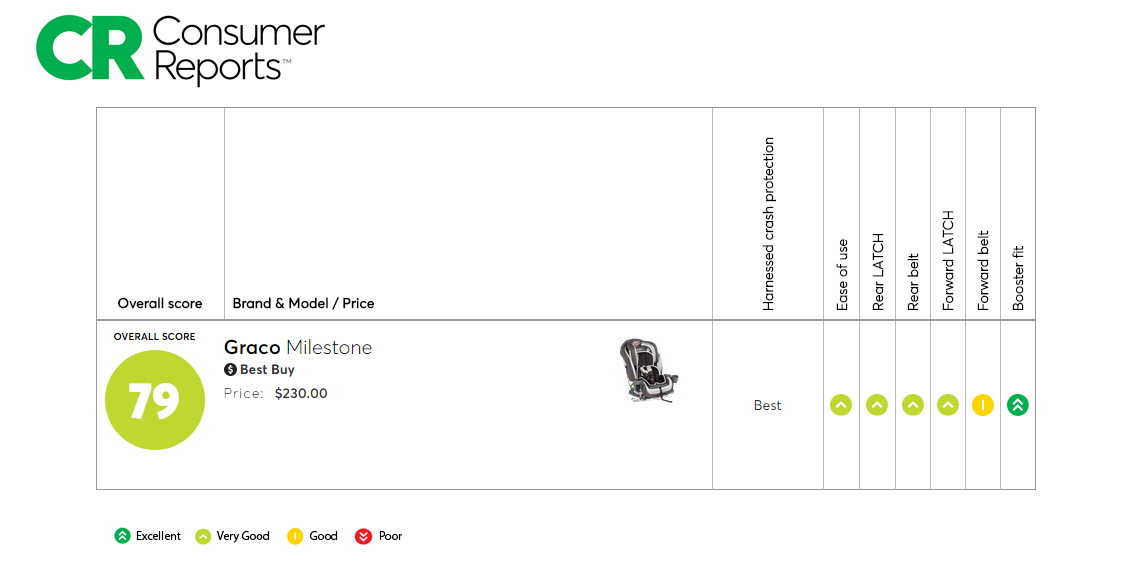 - מושב הבטיחות בעל הגנת Protech Plus הכוללת מבחני ריסוק מפני פגיעות צד, פגיעות אחוריות, פגיעות חזיתיות ומבחני התהפכות.