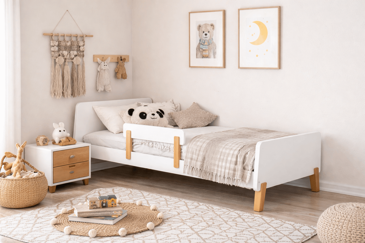 מיטת מעבר מעוצבת עם מעקה נייד ארוך ניתן להסרה דגם נומי