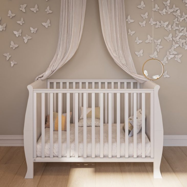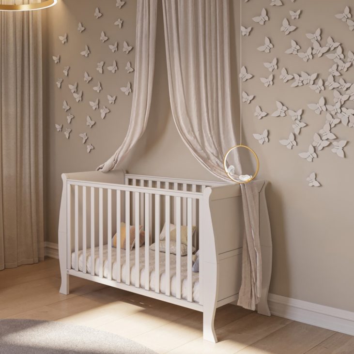 • המיטה מתוכננת להתאים לכל חדר תינוק מעוצב, בזכות הקווים העגולים, הגוון הלבן האלגנטי והמראה היוקרתי המשדר רוגע, ניקיון וסטייל.