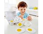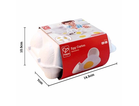 סט ביצים למשחק דמיון במטבח באריזה דמוית קרטון ביצים מבית HAPE. באריזה ביצי עץ הנחתכות ומתחברות חזרה על ידי סקוץ’ כביצים קשות, וביצי פלסטיק הנפתחות ובתוכן “ביצת עין” עשויה לבד. משחק דמיון וחיקוי כמו גדולים מהנה