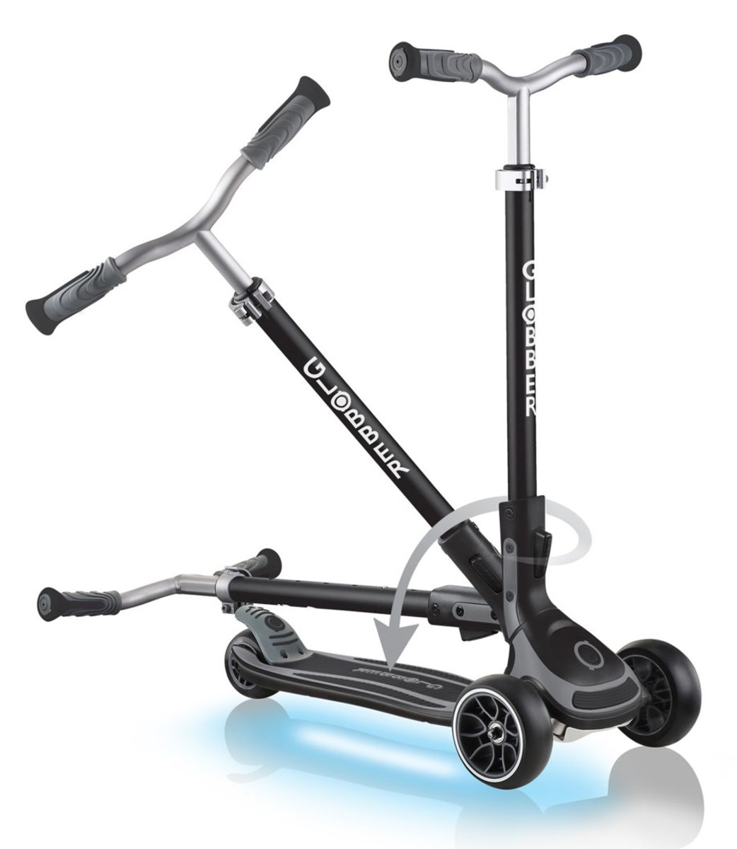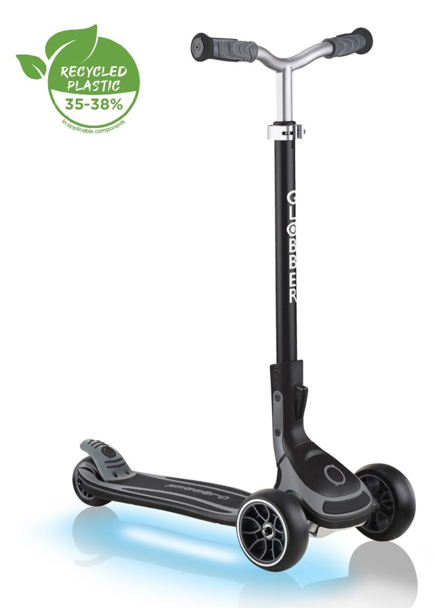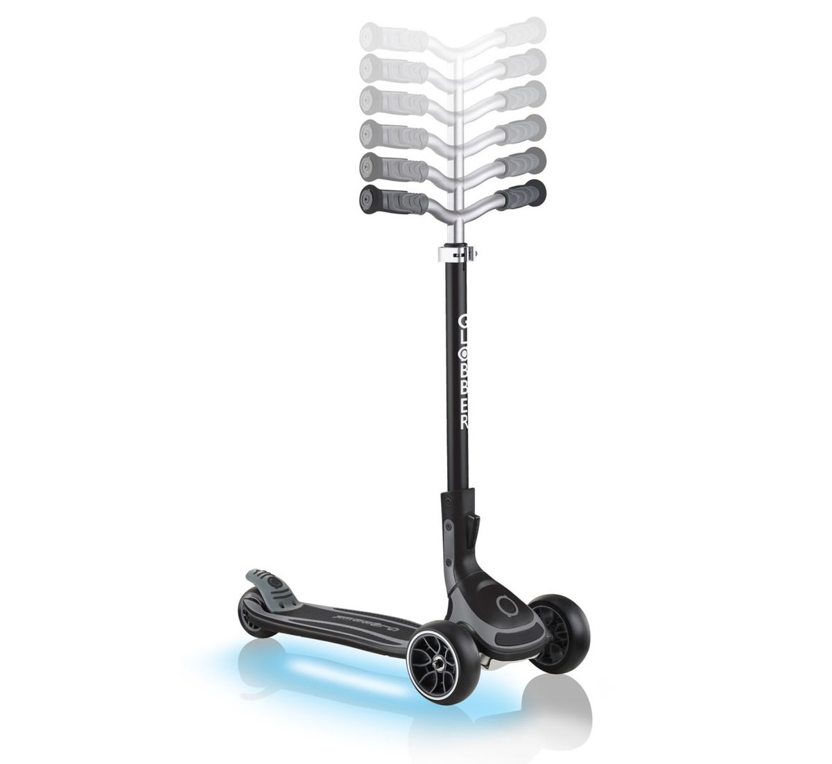 קורקינט האולטימום Ultimum Lights החדשני של גלובר, לקורקינט ידית בעלת 6 מצבי גובה, 3 גלגלי PU איכותיים בולמי זעזועים ומשטח רחב ומרווח עם ציפוי מונע החלקה.