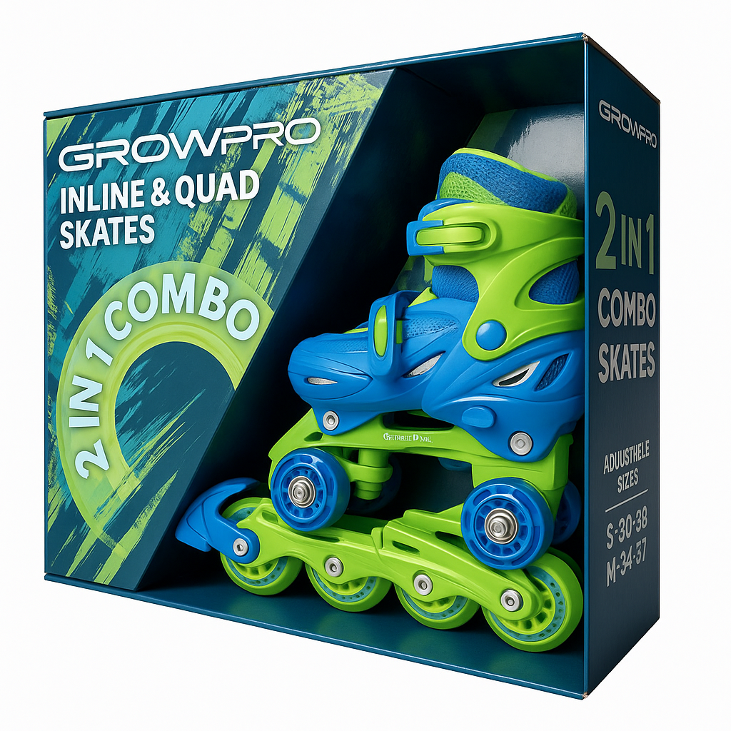 - רולר בליידס קומבו משולב גלגליות 2ב1 לילדים מבית Grow – שילוב של בטיחות, נוחות ועיצוב