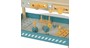 - השולחן כולל מדף אחסון נוח ומתלה לתליית כלי העבודה, ומאפשר לילדים לטפח מיומנויות סדר וארגון תוך כדי משחק.