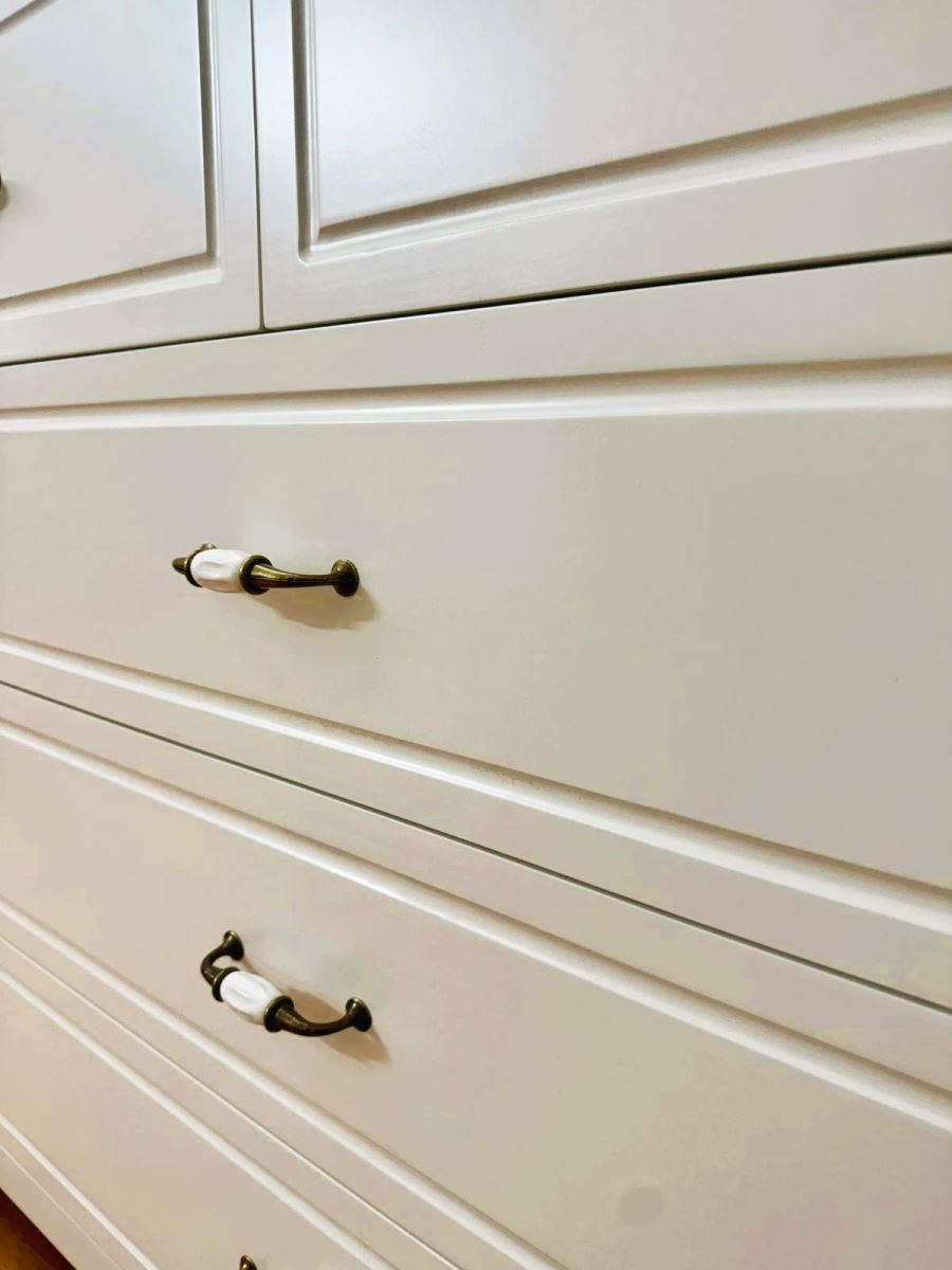 - ידיות הברונזה המעוצבות משלימות את התחושה העדינה והעל־זמנית, ומתמזגות בהרמוניה עם כל סגנון עיצוב בחדר.